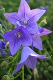 桔梗といえば、青紫色の美しい星型の花を思い浮かべる。 陰陽師として有名な安倍晴明が使っていた五芒星(星型)の印を、桔梗紋といい、清明神社において、神紋とされている。 花びら同士がついていることから、英名はbollon flowerと呼ばれる。 |